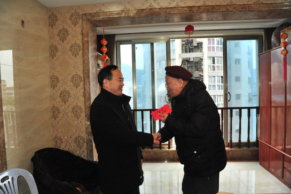 在离退休老同志家中,李廷勇、张伟等与他们握手问安,拉家常,关切地询问他们的生活和身体状况,对他们敬业爱岗、默默奉献、乐育英才深表敬意;叮嘱他们在疫情防控时期要特别注意做好防护、保重身体,并祝愿他们健康长寿、家庭幸福,过一个欢乐祥和的新春佳节。