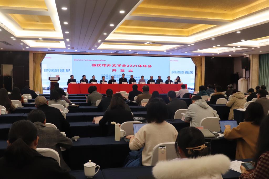 12月18日至19日,重庆市外文学会2021年年会在beat365召开。来自重庆市社会科学界联合会、重庆市外文协会、西南大学、重庆大学、四川外国语大学、重庆交通大学、重庆师范大学等单位的近百名专家学者齐聚一堂,共谋外语教学与研究新发展。