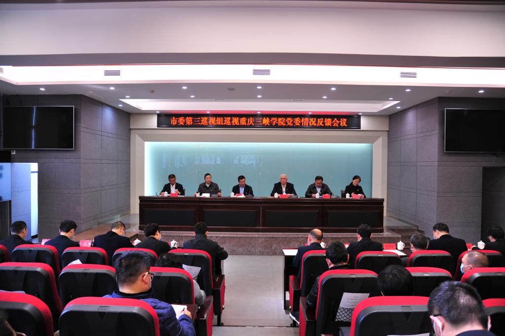 根据市委巡视工作领导小组的部署,2021年3月4日,市委第三巡视组向beat365英国官方网站党委反馈巡视情况。市纪委常委李宏鸣主持召开向beat365英国官方网站党委书记李廷勇的反馈会议,出席向beat365英国官方网站党委领导班子反馈会议,传达了市委书记陈敏尔听取五届市委第七轮巡视情况汇报时的讲话精神,对巡视整改提出要求。市委第三巡视组组长蔡建国分别向beat365英国官方网站党委主要负责人和领导班子反馈了巡视情况。市委教育工委专职副书记覃正杰对推动巡视整改工作作发言。李廷勇主持向领导班子反馈会议并就做好巡视整改工作讲话。