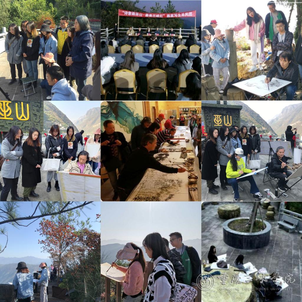 活动期间,师生与市内外知名画家共绘大美巫山,并深入巫山最美胜境,描绘秀美巫峡、平湖碧波、满山红叶、迷幽峡谷……,在观摩艺术家创作中感受三峡自然之真的表现之法,在与艺术家互动交流中体悟山水情怀与三峡精神,在直面大美巫山之景写生时感受祖国大好河山的壮美与崇高、优美与秀丽。通过本次研学,师生们写生并创作出了一批表现三峡红叶、巫山秀美、壮丽风光的山水画作品。