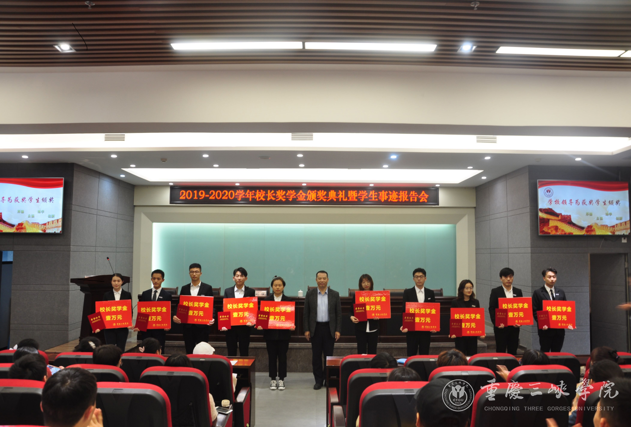 臧小林为获得“校长奖学金”的十位同学颁发了获奖证书并合影留念,对获奖的全体同学表示热烈祝贺,对辛勤培育学生成长进步的老师表示衷心感谢。臧小林强调,今天受到表彰的同学,是beat365两万多学生中的佼佼者,他们用实际行动践行了厚德、博学、自强、创新的校训。他希望青年学生要不断加强思想道德修养,自觉践行社会主义核心价值观,将个人命运与国家命运联系起来,专心学业,努力拼搏,付诸行动,争做向上向善、勇于攀登的三峡学子,做到德智体美劳全面发展,成为堪当民族复兴大任的时代新人,为国家建设和社会进步作出应有的贡献!