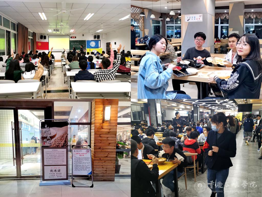 据了解,活动期间,学校通过官方网站、微信公众号、宣传栏、校报专栏、主题班会等多种方式向全校师生宣传节约粮食、杜绝餐饮浪费,还举办了“勤俭节约 从我做起”征文比赛和“爱粮节粮 拒绝餐饮浪费”光盘打卡等活动。学校专门组建了“倡导节约”工作队伍,安排各食堂的监管人员、食堂现场管理人员、学生志愿者在就餐时间段引导师生合理购餐,并对用餐现场发生的餐饮浪费行为进行提醒、劝告。领导干部、教师党员、学生党员、学生干部纷纷以身作则,率先垂范,让光盘成为了“新时尚”。