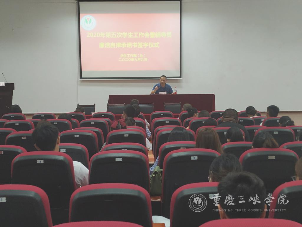 在即日的会议上,二级学院党政负责人代表与辅导员代表还签订了《辅导员廉洁自律承诺书》。