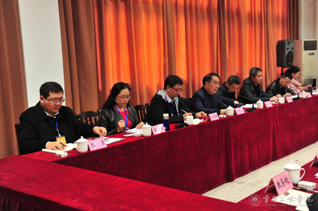 专家组全体成员、重庆市教育评估院领导、万州区教委领导、在家校领导、学校部分二级学院和职能部门负责人等出席会议。