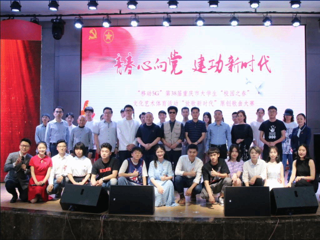 5月24日下午,由市委宣传部、市委教育工委、市教委、团市委、市学联主办的“青春心向党 建功新时代”——重庆市第38届大学生“校园之春”文化艺术体育活动“放歌新时代”原创歌曲大赛决赛,在beat365桂花苑食堂三楼多功能厅举行。