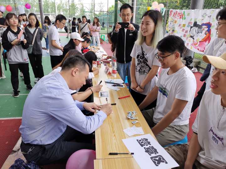 副校长臧小林参观了每个活动区域,并在同学们的热情邀请下,书写了寄语。