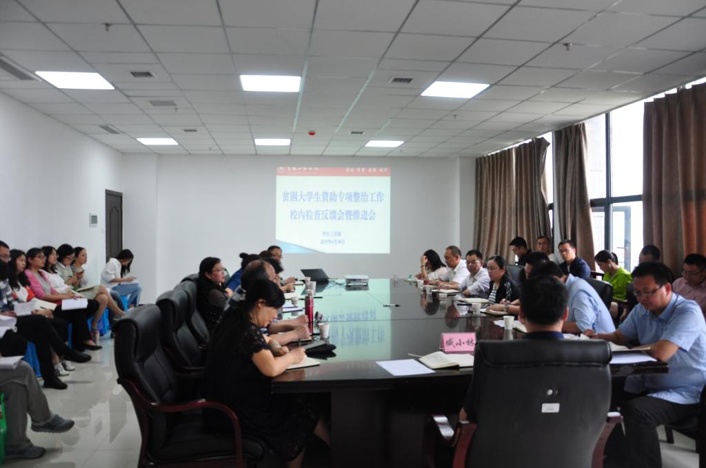 4月30日下午,学校在科技楼611会议室召开贫困大学生资助专项整治工作校内检查反馈暨推进会,副校长臧小林、各二级学院学工负责人、负责资助工作的老师和学生处相关人员40余人参加会议。
