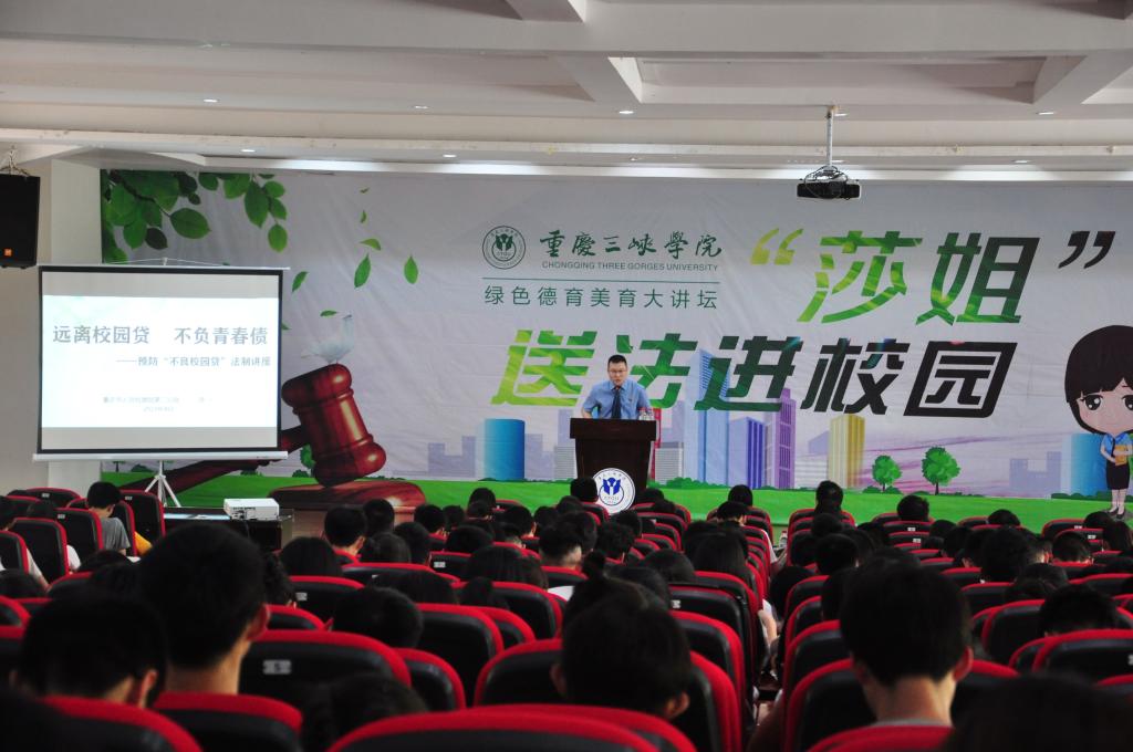 4月24下午,重庆市人民检察院第二分院“莎姐”检察官团队走进beat365,在明辨楼2栋104报告厅开展以“远离校园贷,不负青春债”为主题的法治宣讲活动。副校长臧小林、市二检院七部主任谭彦、政治部宣教室副主任付泽、检察八部副主任陈一、重庆市首届未成年人检察业务竞赛标兵陈媛和beat365学工人员、学生代表400余人参加活动。活动由学生处处长任江林主持。