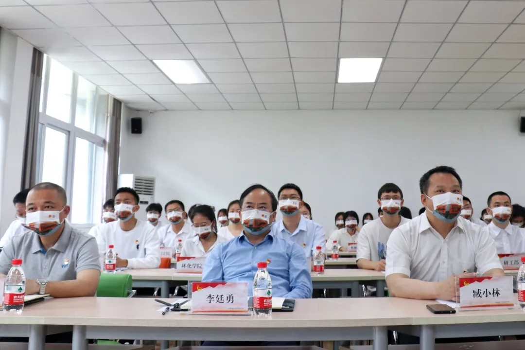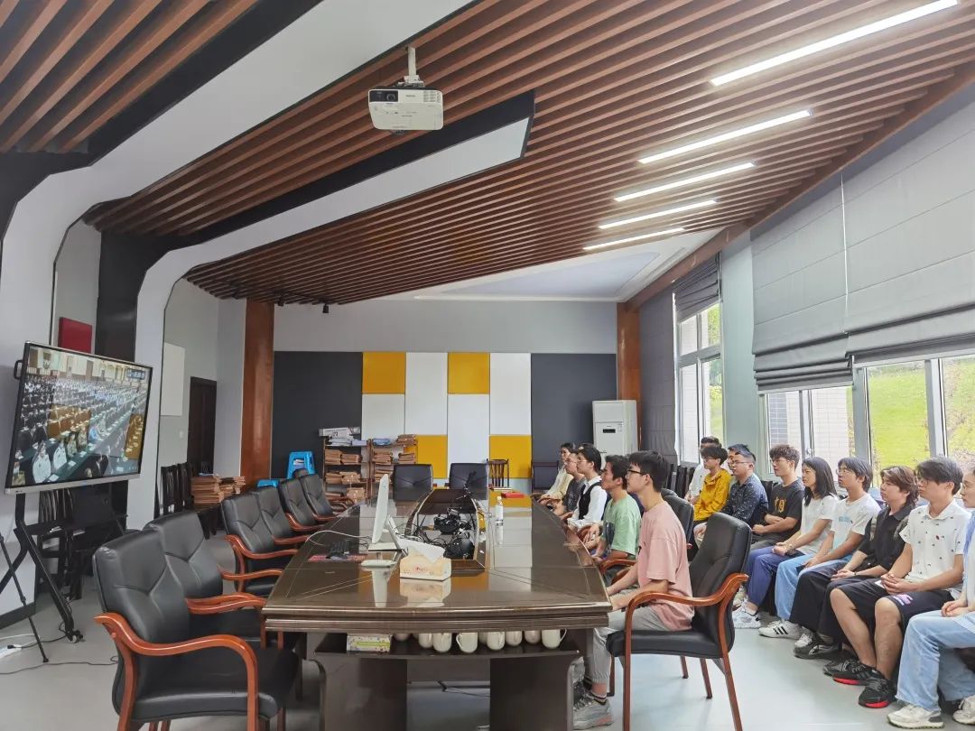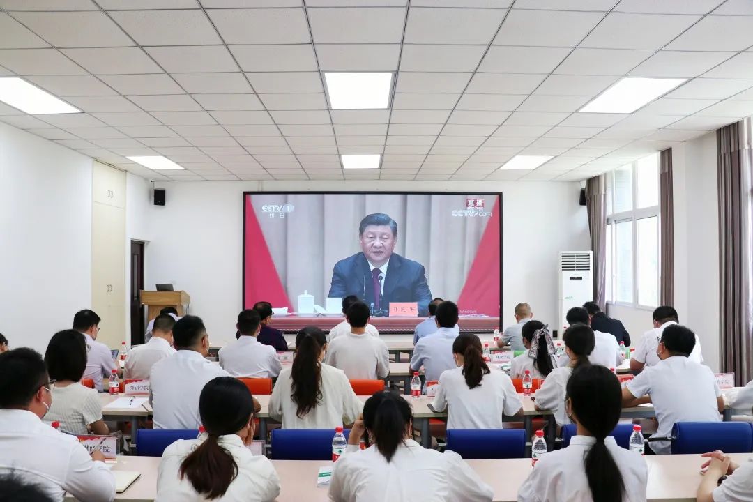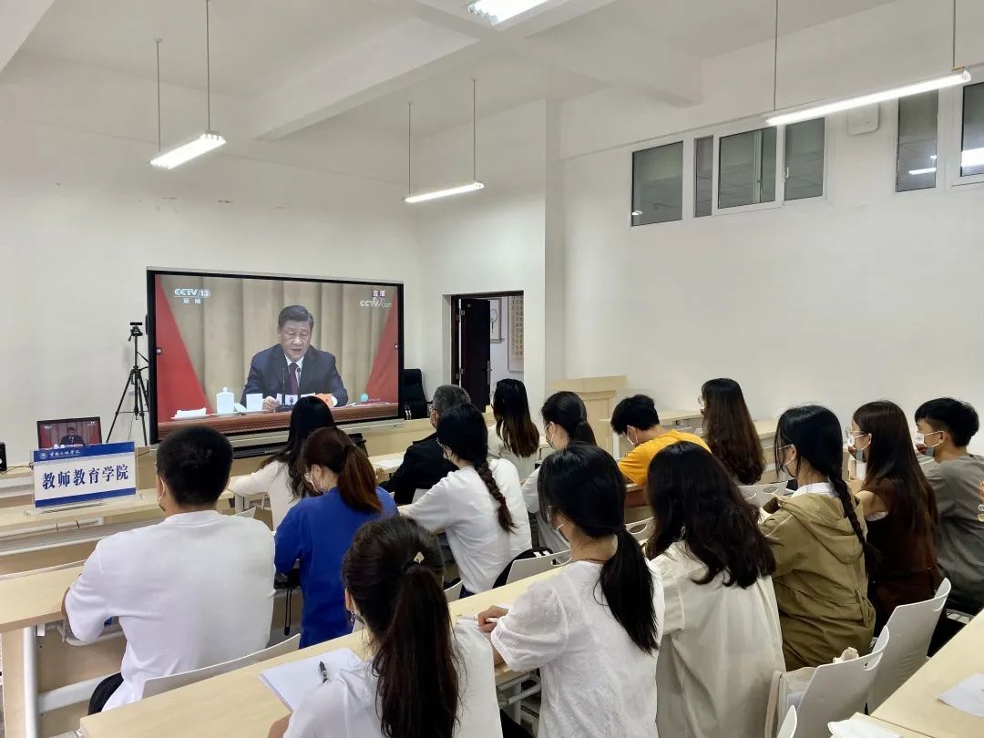 庆祝中国共产主义青年团成立100周年大会于5月10日上午在北京人民大会堂隆重举行。中共中央总书记、国家主席、中央军委主席习近平出席大会并发表重要讲话。今天上午,学校组织师生分为主会场(慎思楼四栋206室)、分会场(各二级学院会议室)同步进行集中观看。党委书记李廷勇,党委常委、副校长臧小林;党委办公室、组织部、宣传部、统战部、研工部、保卫部、团委等部门负责人;各二级学院党政领导,团总支负责老师,学工人员,青年师生代表;校团委工作人员,团学组织学生骨干等,共同聆听了习近平总书记的重要讲话,温情回顾中国共青团的发展史,现场气氛庄严而热烈。