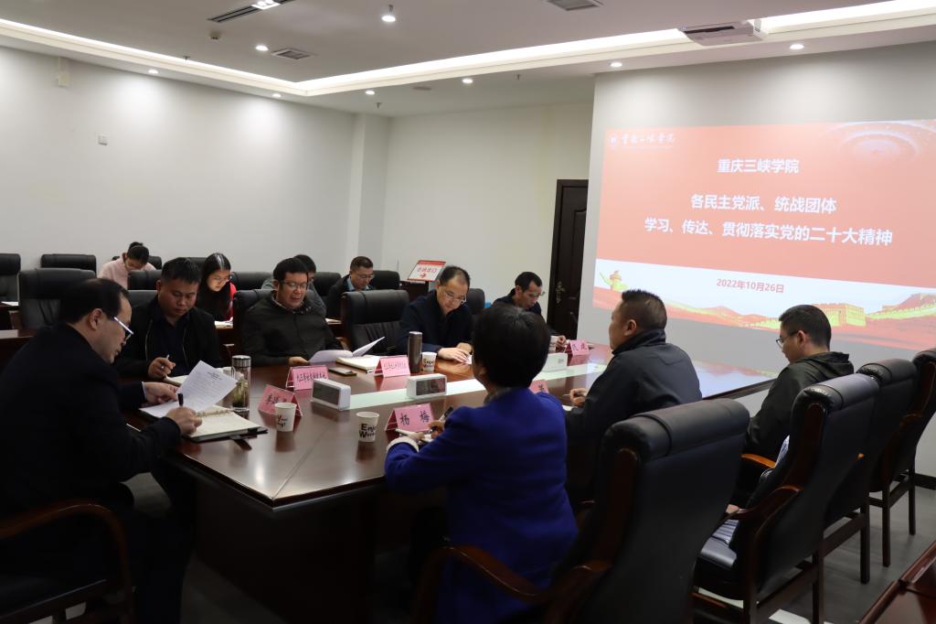 10月26日,学校党委召开各民主党派、无党派人士、统战团体代表学习研讨党的二十大报告座谈会,党委宣传部、党委统战部、科研处负责人及相关人员参加,会议由党委书记李廷勇主持。