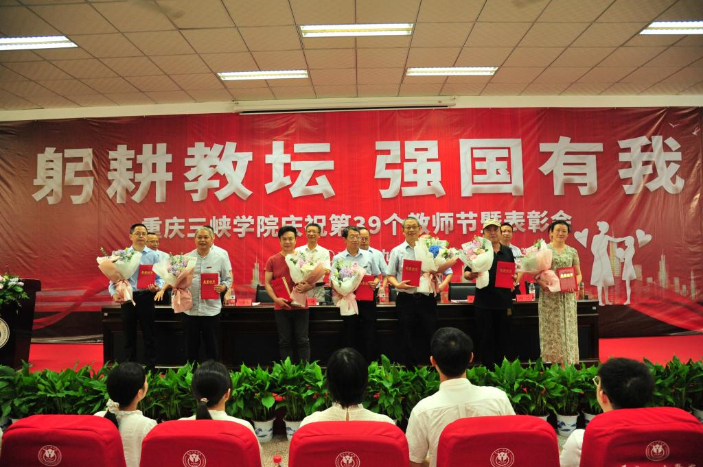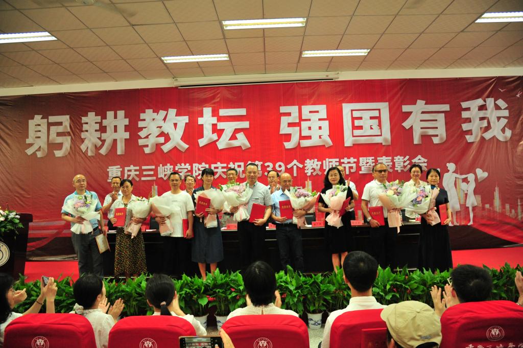 9月7日,学校举行庆祝第39个教师节暨表彰会。学校领导李廷勇、张伟、崔广平、祁俊生、陈文昆、臧小林、付川、郭作飞、代远红出席会议并为获奖教师颁奖,新进教师、教职工(含离退休)代表、学生代表,各二级单位主要负责人参会。会议由学校党委副书记、校长张伟主持。