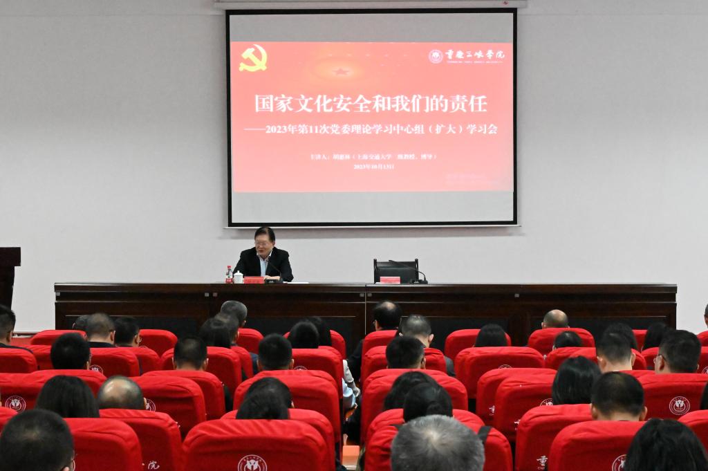 10月13日下午,学校组织召开第11次党委理论学习中心组(扩大)学习会。本次学习主题是:国家文化安全和我们的责任。学校特邀上海交通大学胡惠林教授作专题讲座。
