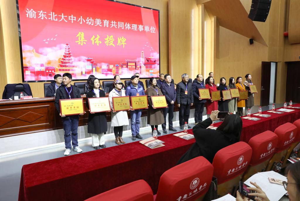 期间,蔡其勇、张伟和刘勇、王小华分别为渝东北大中小幼美育共同体、渝东北大中小幼美育共同体成员单位授牌。