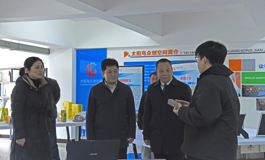 各二级学院团总支负责人和有关师生代表参加座谈。座谈会前,贺秀山一行还参观了“太阳鸟”众创空间和“学习二十大 永远跟党走 奋进新征程”主题书画展。