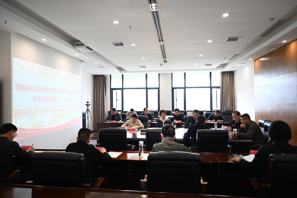 本次学习的主题是“贯彻两会精神持续发挥好高等教育龙头作用 培育发展新质生产力新动能”,集中学习了《政府工作报告》、习近平在参加江苏代表团审议时关于因地制宜发展新质生产力的讲话以及新质生产力的相关专题文章。党委副书记付川、副校长郭作飞作中心发言,发展规划处处长张晓冬、研究生处(学科建设与学位办公室)处长聂祥飞、文学院院长李俊、机械工程学院院长赖于树作交流发言。