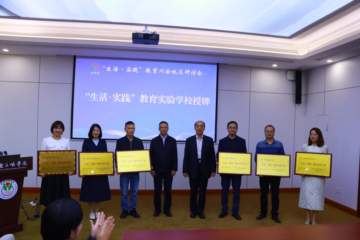 会上,周洪宇、付川、王小华、薛娟分别为四川省金堂实验中学、四川省成都市草堂小学、重庆市万州第三中学、重庆市合川区东渡小学、重庆市两江新区思湖山幼儿园等12所学校授牌,祝贺他们正式加入“生活·实践”教育实验学校。