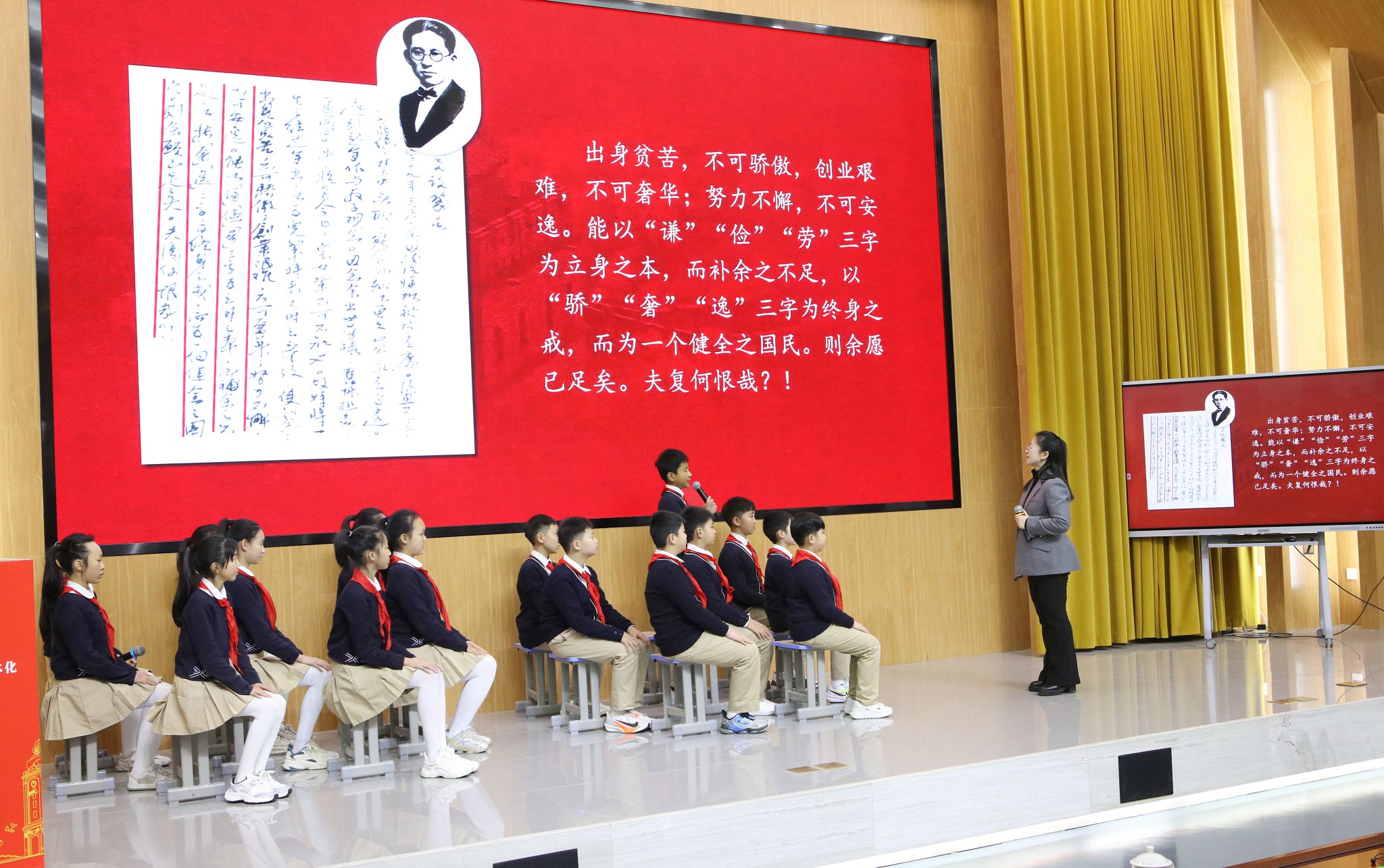 在大中小学思政“金课”展示环节。各学段思政课教师围绕“红岩家书”展开同题异构。小学阶段以“红岩魂 家书情”为题,通过生动的教学方式引导学生理解家书在历史中的情感价值。初中阶段以“红岩家书 何以为‘家’”为题,带领学生深入挖掘家国情怀与个人责任的内涵。高中阶段通过“一封家书万千情怀”这一主题,引导学生深入思考家书所蕴含的历史与文化深度,以及个体与国家之间的紧密联系。大学阶段以“传承红岩精神赓续斗争意志”为主题,聚焦红岩精神的历史意义,探讨斗争精神在当代社会的价值及其实践路径。老师们不仅展示了不同学段思政课的教学特色和创新实践,也为更好地实现大中小学思政课内容衔接与贯通提供了典型示范,受到论坛特邀专家、安徽师范大学博士生导师朱平教授的高度评价。