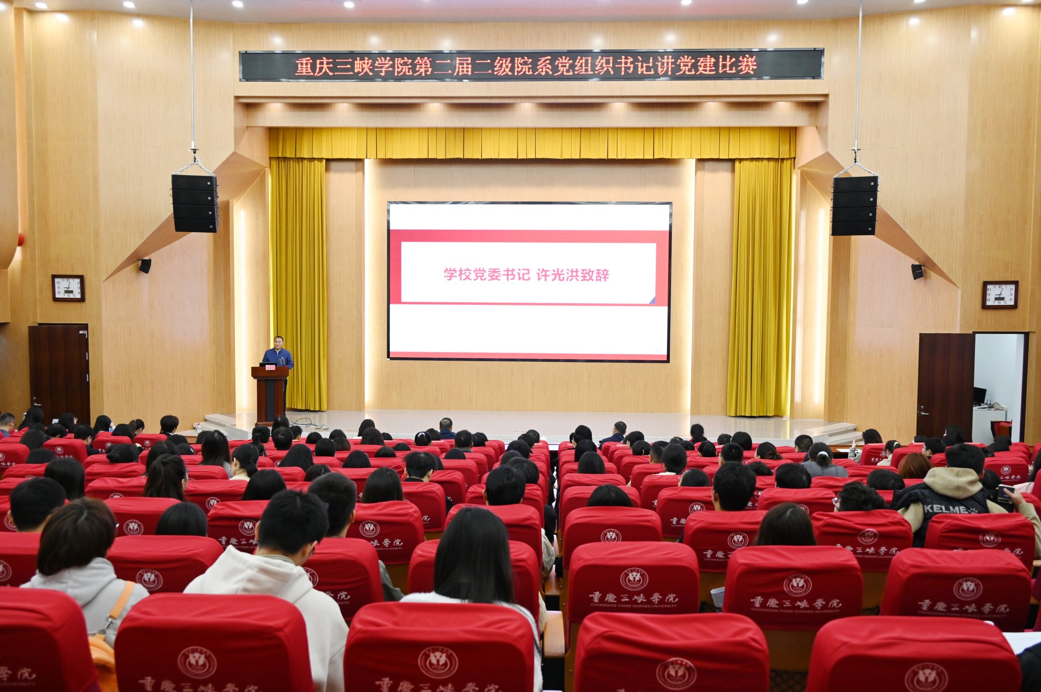 11月14日,学校第二届二级院系党组织书记讲党建比赛在博学楼群多功能厅举行。学校党委书记许光洪出席活动并致辞。