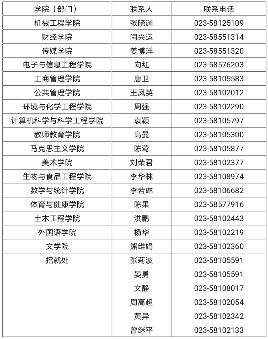 四、同学们对就业工作有疑问或者急需帮助的,请直接联系各二级学院以及招生就业处的老师,联系人及联系方式详见下表。