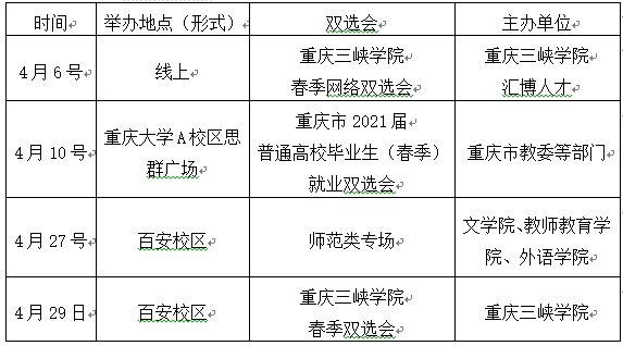 (五)参加重庆市教委4月10日在重庆大学A校区思群广场(重庆市沙坪坝区沙正街174号)举办的重庆市2021届普通高校毕业生(春季)就业双选活动注意事项