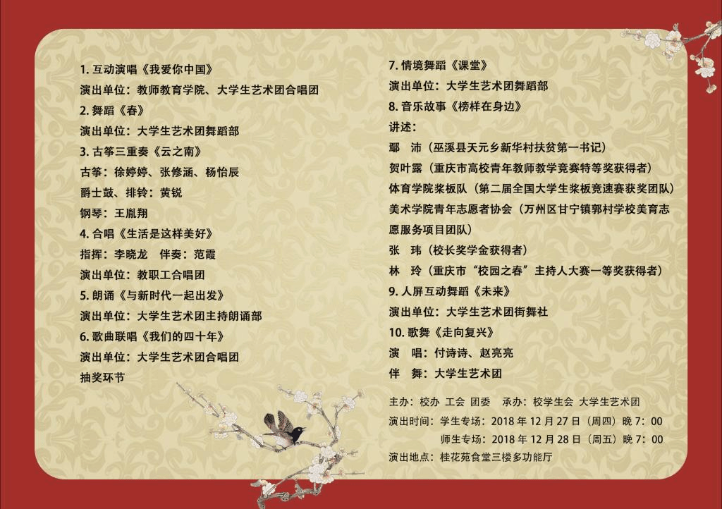 2.通过“beat365英国官方网站学生会官方QQ空间”平台线上“集赞”(150张,先到先得)及“抽奖”(50张)方式获取门票的观众,请于12月26日中午12:20—14:20到科技楼402领票。