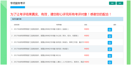 点击“进入任务”图标 可以查看当前用户需要考评的对象,如下图: