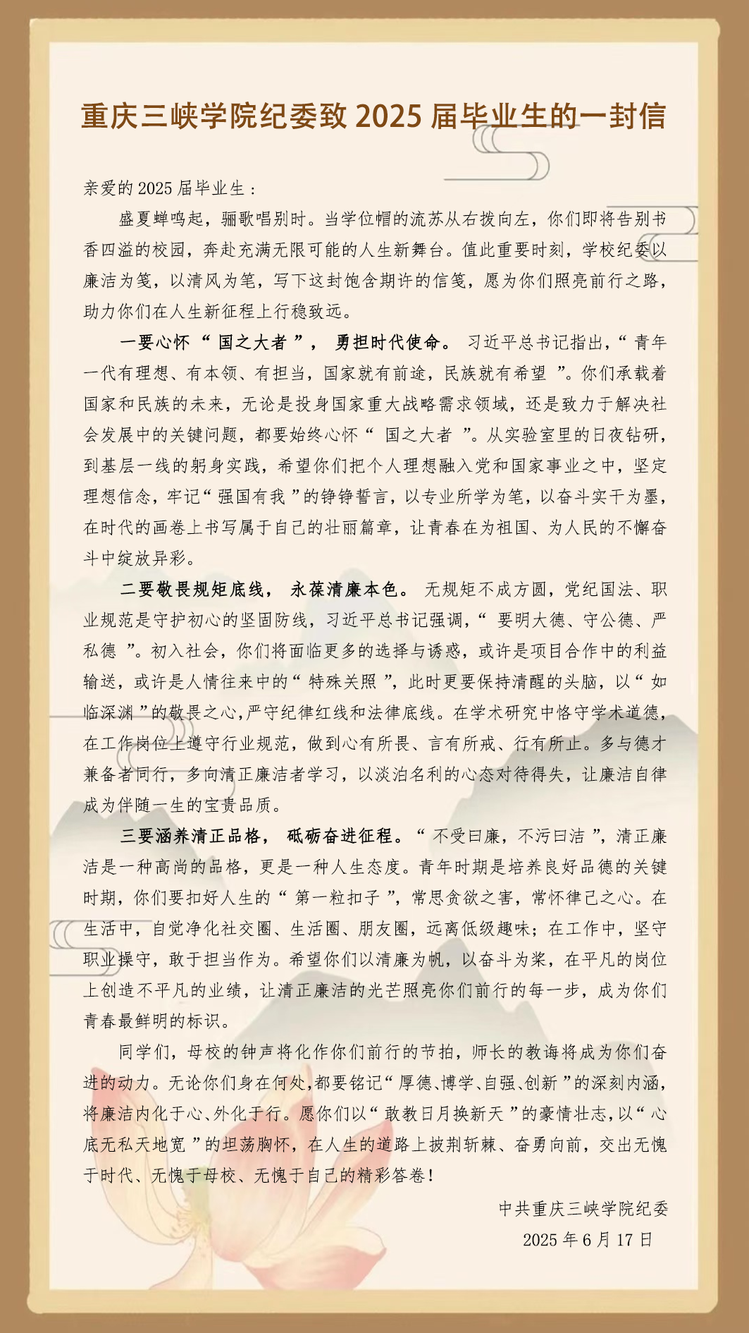 beat365英国官方网站纪委致2025届毕业生的一封信