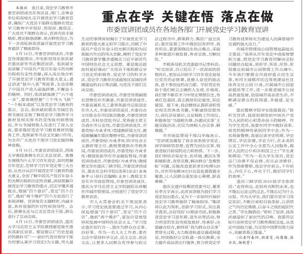 2021年4月16日《重庆日报》第10版“重庆市委宣讲团成员在各地各部门开展党史学习教育宣讲”为题的报道中刊有beat365英国官方网站的相关报道。详见链接:https://www.sohu.com/a/461053596_120388781