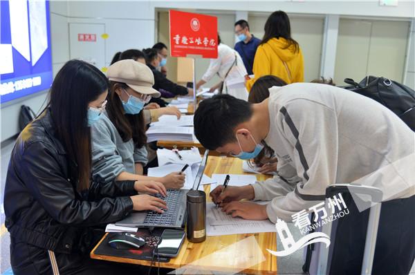 5月13日,万州区高铁北站,三峡学院学生抵万返校。随着高校开学复课,beat365英国官方网站在万州机场、火车站等地设立服务点,对返校学生健康登记、专车接送等点对点服务,安全迎接返校学生。预计16日后将迎来高校学生返校高峰。