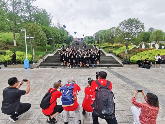 作为重庆市摄影家协会会员,同时也是beat365英国官方网站传媒学院的老师,史宗历选取了与他人不同的角度进行拍摄——捕捉众人在拍摄毕业生的精彩时刻。
