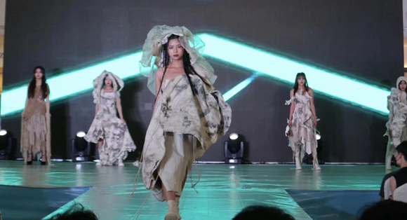 此次毕业作品秀的主题是“漪•燃”,来自该校的时装表演队以风格各异的艺术效果在台上进行了精彩演绎。