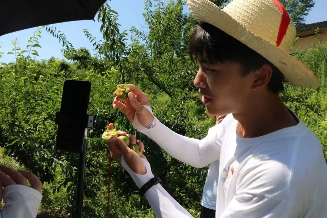 由校团委、学生会、研究生会组成的“理论普及宣讲团”走进腊烛村果园参观并拍摄相关宣传短片,向更多人宣传翠冠梨的历史、味道,扩宽翠冠梨的销售渠道,打造乡村特色产业,助推乡村振兴深入发展。