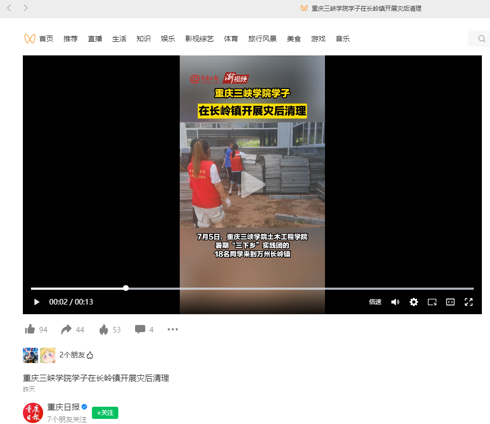 下一条:2023年7月6日《上游新闻》:灾后重建的青春力量!这里有支00后志愿队