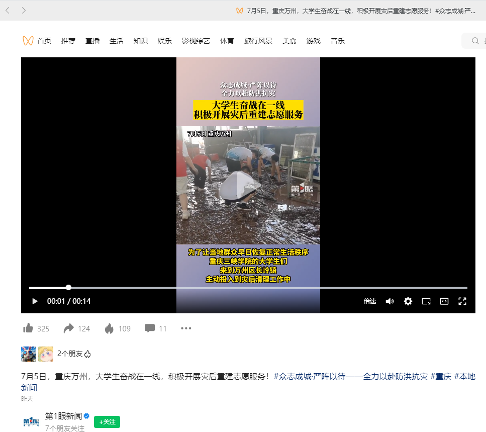 7月5日,重庆万州,大学生奋战在一线,积极开展灾后重建志愿服务!#众志成城·严阵以待——全力以赴防洪抗灾 #重庆 #本地新闻