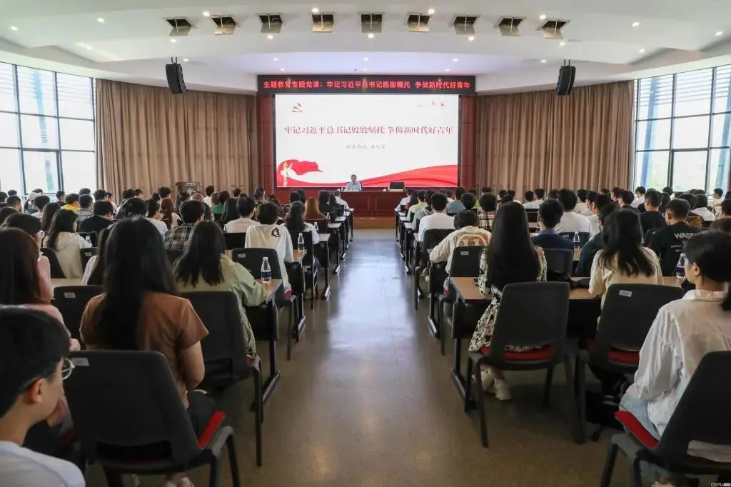 李天安从“深刻领会主题教育的重要意义和目标要求”“深刻领会习近平总书记对青年的殷殷嘱托,学习青年榜样汲取青春力量”“深刻把握‘三个坚持’争做新时代好青年”等方面作了详细深入的解读与阐述。他表示,一代又一代中国青年继承先辈精神,在革命、建设、改革的历史洪流中留下了青春奋斗的足迹,大家要向他们学习、向他们看齐,从他们身上汲取力量,传承好、发扬好能吃苦、善创新、有韧劲、敢担当的重庆交大人优良品质,并努力将其注入到日常学习和生活中的方方面面中去。