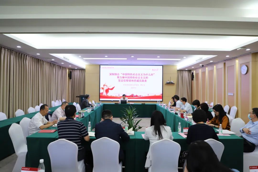 覃正杰以《深刻领会“中国特色社会主义为什么好”努力做中国特色社会主义的坚定信仰者和忠实实践者》为题,从“中国特色社会主义‘好’在哪里”“中国特色社会主义为什么这样‘好’”“增强‘四个自信’,做中国特色社会主义的坚定信仰者和忠实实践者”等三个方面,按照主题教育专题党课“四个讲清楚”要求,密切结合学习体会和实际工作,深入讲解阐释了“习近平新时代中国特色社会主义思想的世界观和方法论”,为全校进一步讲好主题教育专题党课立了标杆、做了示范。