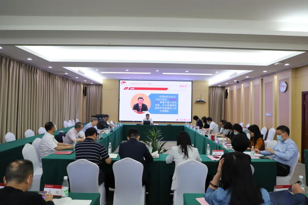 蔡家林结合自身学习体会和调研成果,从主题教育的总要求和根本任务出发,结合学校实际,围绕新时代“红岩先锋”变革型组织建设的主要背景、主要原由、主要目标和主要路径等四个方面的内容进行了重点阐述。