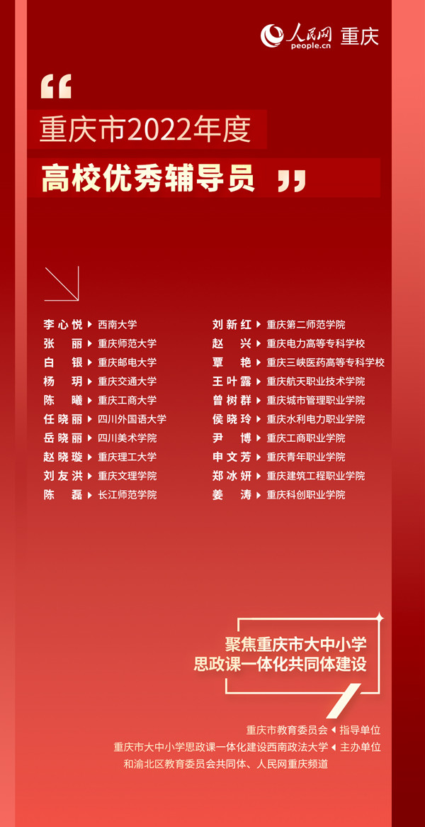 附:重庆市2022年度高校思想政治工作“年度人物”名单