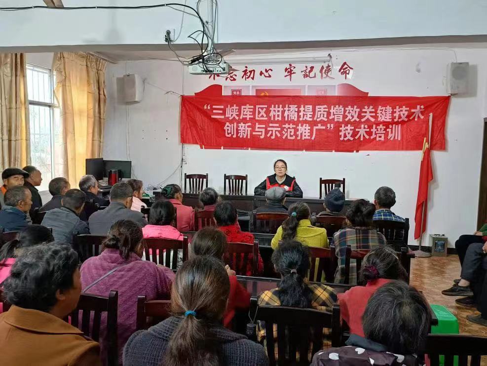 ▲马晓丽在库区为村民现场培训柑橘提质增效技术。受访者供图