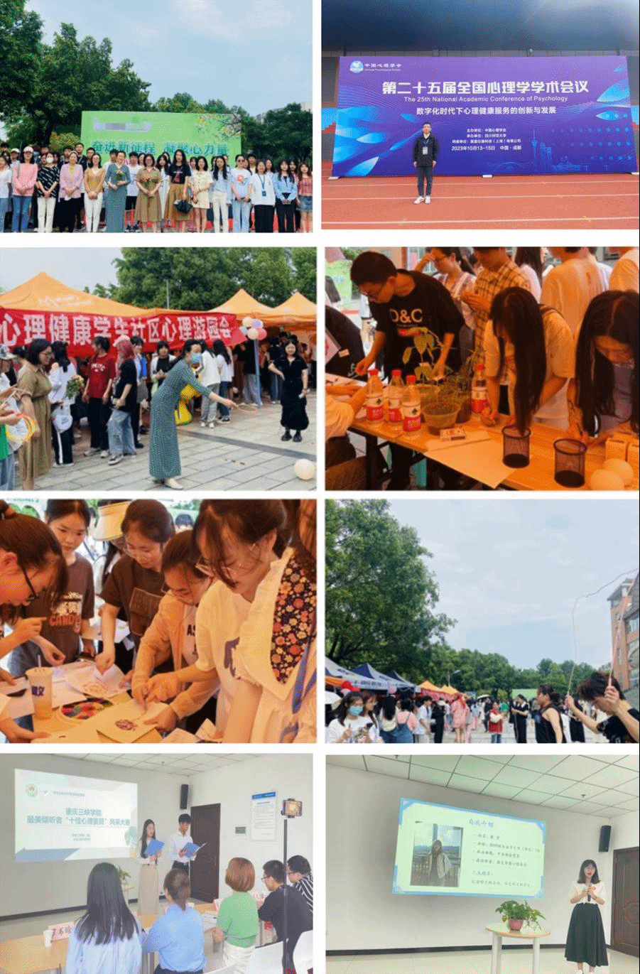 学校把心理健康教育纳入人才培养方案,开设《大学生心理健康教育》必修课和心理健康选修课,向学生推荐优秀网络心理健康教育学习资源,满足学生多元化、个性化需求。学校开通24小时心理咨询热线,每天安排心理教师值班,寒暑假开展线上心理咨询,为学生提供全天候心理服务。出台《学生心理危机干预办法》《学生意外伤害事故处理办法》等制度文件,对心理异常现象早发现、早报告、早治疗,及时干预,处置在早,化解在小。开展心理健康活动月、心理健康操、心理情景剧、观看心理电影、主题班会、团体辅导、心理手抄报、展板橱窗、发放宣传资料、公众号推文等形式多样的活动,普及心理知识,吸引学生广泛参与。对辅导员、宿管员、心理委员、楼长、层长、寝室长开展心理健康培训。教师结合教学实践进行理论探索的成果获得重庆市思想政治工作优秀案例征集二等奖、重庆市高等教育学会学术年会论文征集二等奖等荣誉,1名教师应邀在中国心理学会第二十五届全国心理学学术会议作报告。学生原创心理情景剧作品《树林荫翳》获评第六届全国高校心理情景剧百佳剧目。