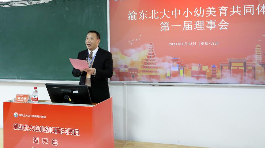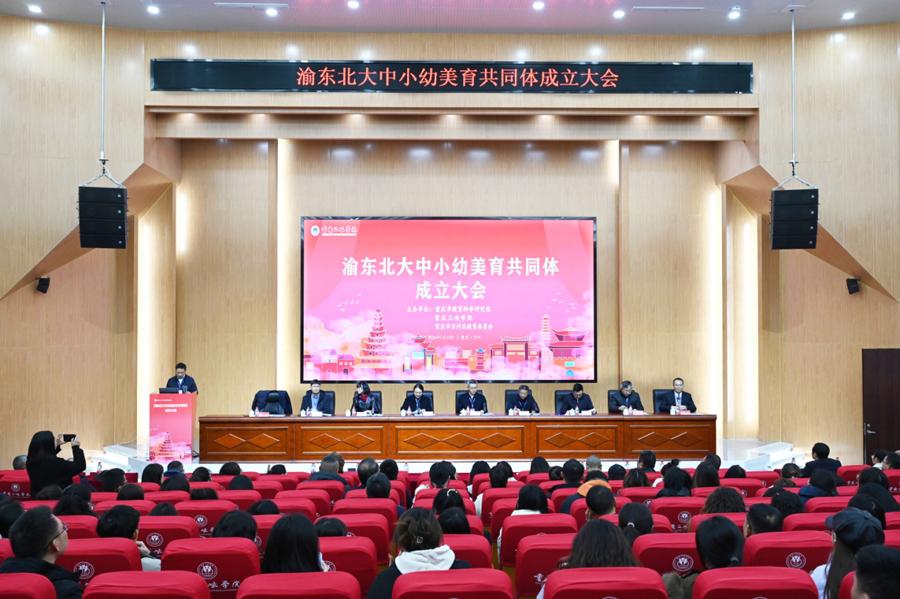 日前,由重庆市教育科学研究院、beat365英国官方网站、万州区教委主办的渝东北大中小幼美育共同体成立大会在beat365英国官方网站百安校区多功能厅举行。