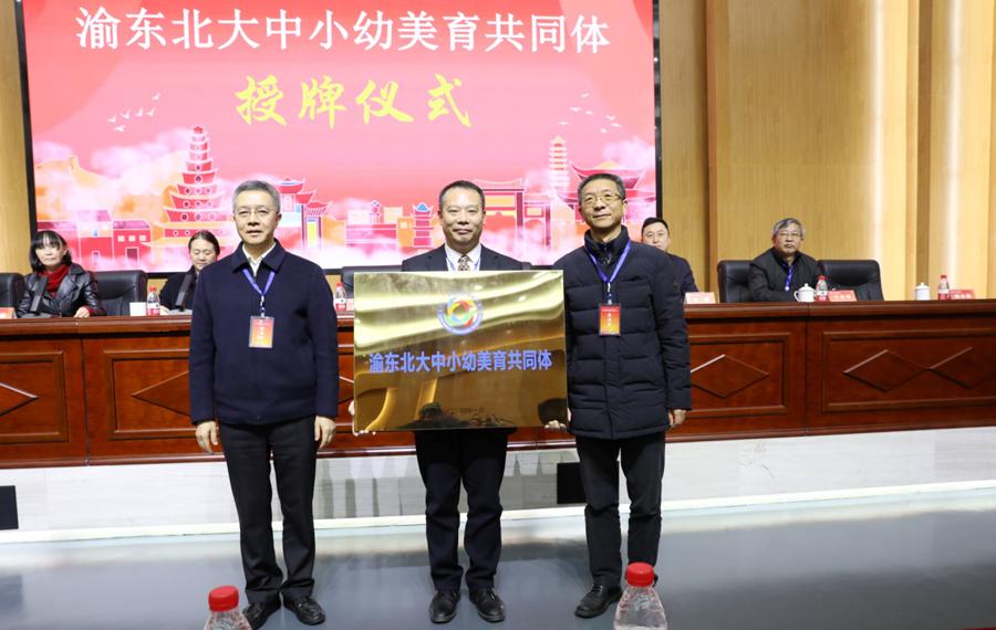 蔡其勇、张伟和刘勇、王小华分别为渝东北大中小幼美育共同体、渝东北大中小幼美育共同体成员单位授牌。