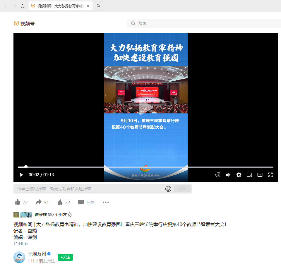 2024年9月10日《平湖万州》:视频新闻 | 大力弘扬教育家精神,加快建设教育强国!beat365英国官方网站举行庆祝第40个教师节暨表彰大会!