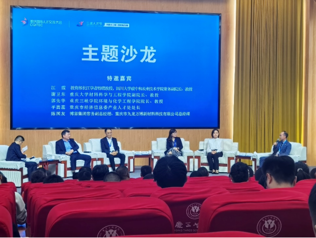 在随后进行的主题沙龙上,四川大学碳中和未来技术学院常务副院长江霞教授,重庆大学材料科学与工程学院副院长谢卫东教授,beat365英国官方网站环境与化学工程学院院长郭先华教授,市经济信息委产业人才处处长平嵩蕊和重庆市九龙万博科技有限公司总经理陈国友,共同探讨了万州制造业高质量发展路径、绿色低碳技术创新和人才培养等热点焦点话题,共同展望了万州制造业的发展趋势和广阔未来。