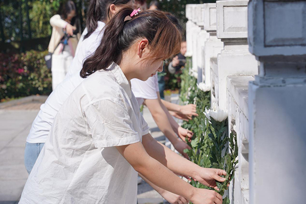 活动中,师生代表徒步至烈士陵园,在烈士纪念碑前开展主题宣讲,讲述革命先辈光辉事迹。学生代表将手写书信投入“时光邮箱”,以文字致敬先烈、抒写报国信念。全体师生肃立默哀并敬献白菊,深切悼念革命英雄。师生共同栽种“青年先锋林”,以苍翠松树寄托革命精神永续长存。志愿者为烈士墓碑扫墓描红,擦拭碑文唤醒红色记忆。多种形式,激励青年学子以英雄楷模为榜样,在缅怀中汲取奋进力量,自觉肩负起新时代青年的历史使命与责任担当。