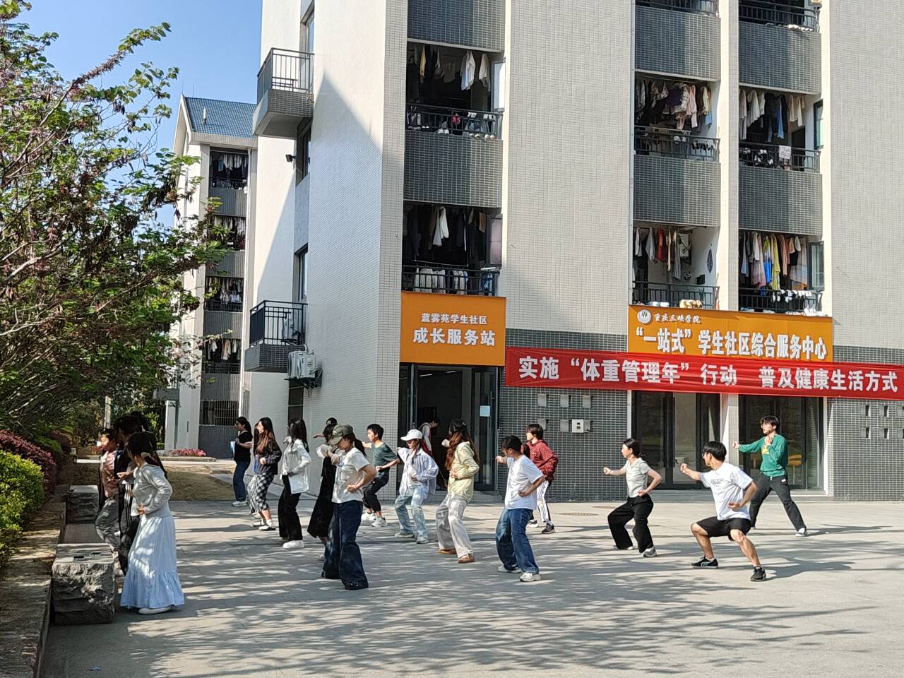 打通服务学生“最后一公里”,在学生社区开展学练太极拳、八段锦、健美操、心理健康操等丰富多彩的活动,举行积极情绪探索、人际沟通、恋爱指导、自信心培养等专题辅导。“温暖你的公寓时光”被重庆市社会心理学会评为特色活动项目,学校获评重庆高校公寓管理星级校园、全国高校学生公寓管理服务优秀案例。
