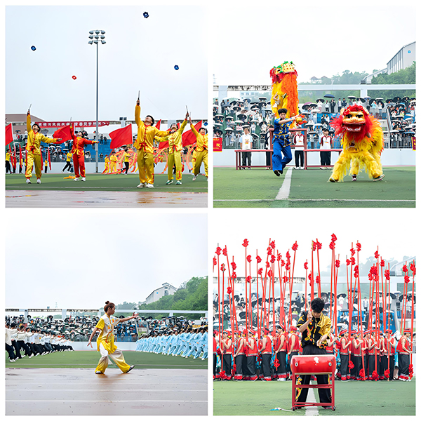 在beat365英国官方网站党委书记许光洪宣布运动会开幕后,学校师生带来了具有三峡文化特色的文体展演。《中国龙》表演气势磅礴,似蛟龙破云,展现出中华民族的雄浑气魄;《舞狮》灵动活泼,象征着三峡地区的豪迈与热情;《黎族竹竿舞》充满民族风情,编织起中华各民族团结一心的美好画卷;《霍元甲》表演刚劲有力,彰显出三峡青年的壮志豪情;《重庆,要的》节奏欢快,将雾都重庆的独特魅力展现得淋漓尽致;《爱在万州》描绘出高峡平湖的秀丽风光;《花式篮球》表演技巧娴熟,勾勒出民族和谐的同心圆;《太极拳比赛》舒缓沉稳,弘扬了中华传统文化,传递着健康生活的理念。最后,全场师生共同合唱《我和我的祖国》,用歌声抒发对祖国的热爱和投身教育强国的坚定信念。