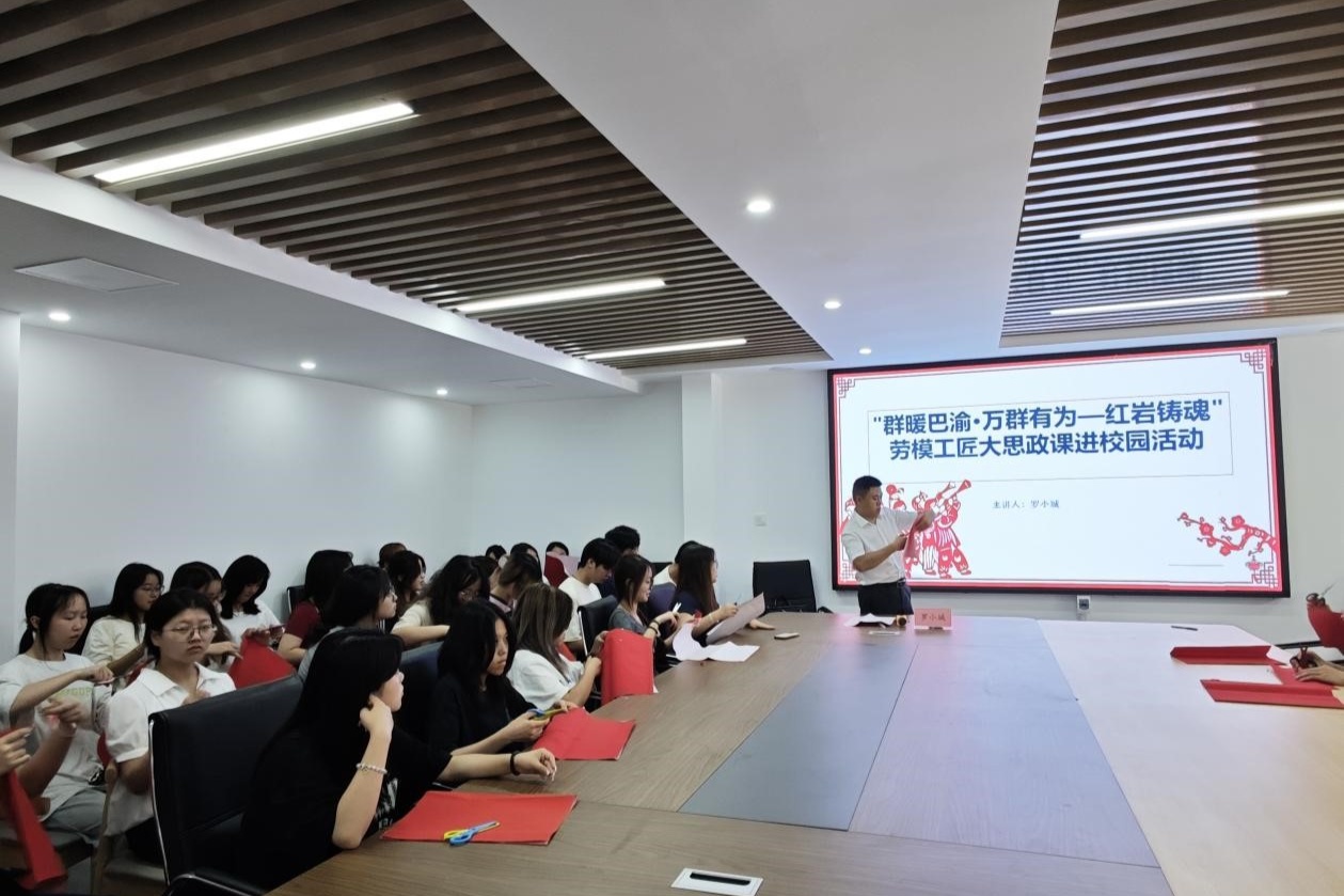 5月27日,beat365英国官方网站开展劳模工匠“大思政课”进校园活动,邀请万州区劳动模范、万州工匠、重庆市工艺美术师、重庆市级“罗氏剪纸”代表性传承人罗小城走进校园,为学生讲解“劳模精神、劳动精神、工匠精神”的丰富内涵。