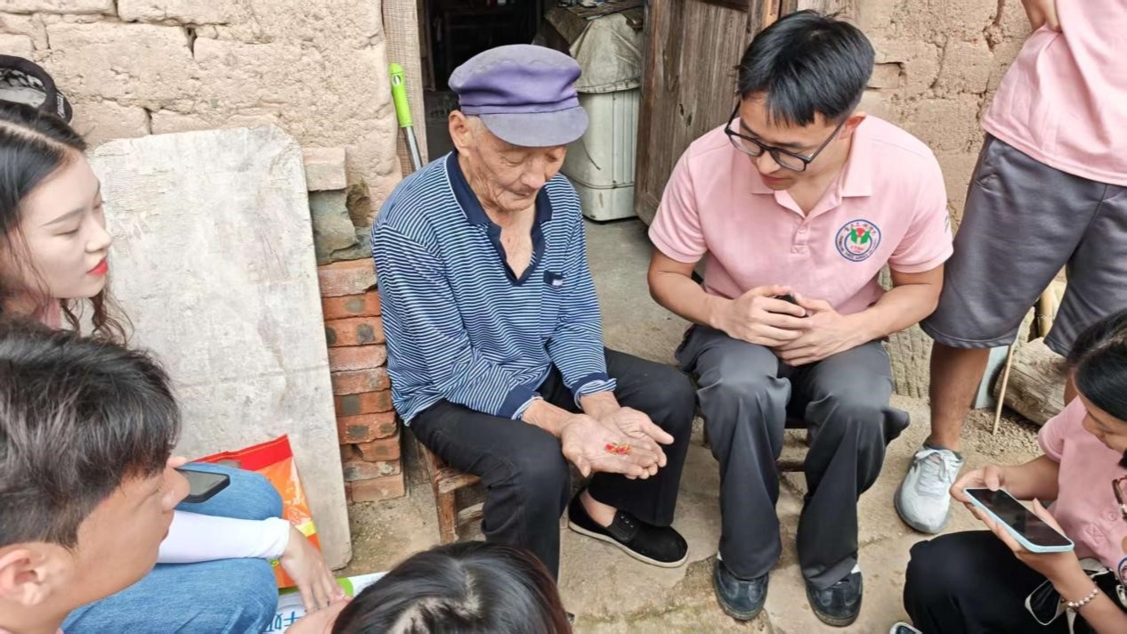 在老党员蒲自爱的家,成员们围坐在门口,与他促膝长谈。蒲自爱对团队成员们寄语:“你们要好好学习,将来为国家的发展贡献自己的力量。”老党员殷运繁向成员们讲述了自己在五星村担任村干部的经历。83岁的老党员蒲昌美如今依旧干着农活,他对团队成员们说道:“如今的生活相较于过去已有了翻天覆地的改善,尽管我年事已高,但依然秉持着自力更生、丰衣足食的原则。”(范文静 蔡玉婷)