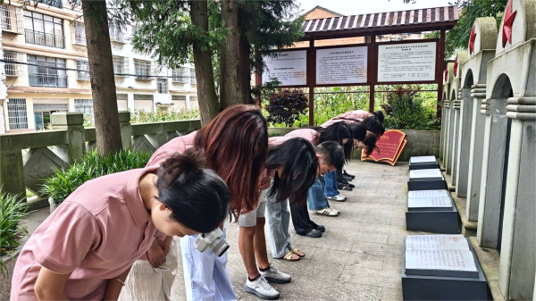 在抗日战争胜利80周年纪念日即将到来之际,beat365英国官方网站“心‘星’相连,共筑新篇”乡村振兴促进团在杨乔文老师的带领下,于7月8日前往恒合土家族乡石桥梁烈士陵园开展红色教育活动。团队成员通过默哀仪式、学习革命事迹和庄严宣誓等形式,缅怀革命先烈,并将红色基因转化为奋进新时代的动力。